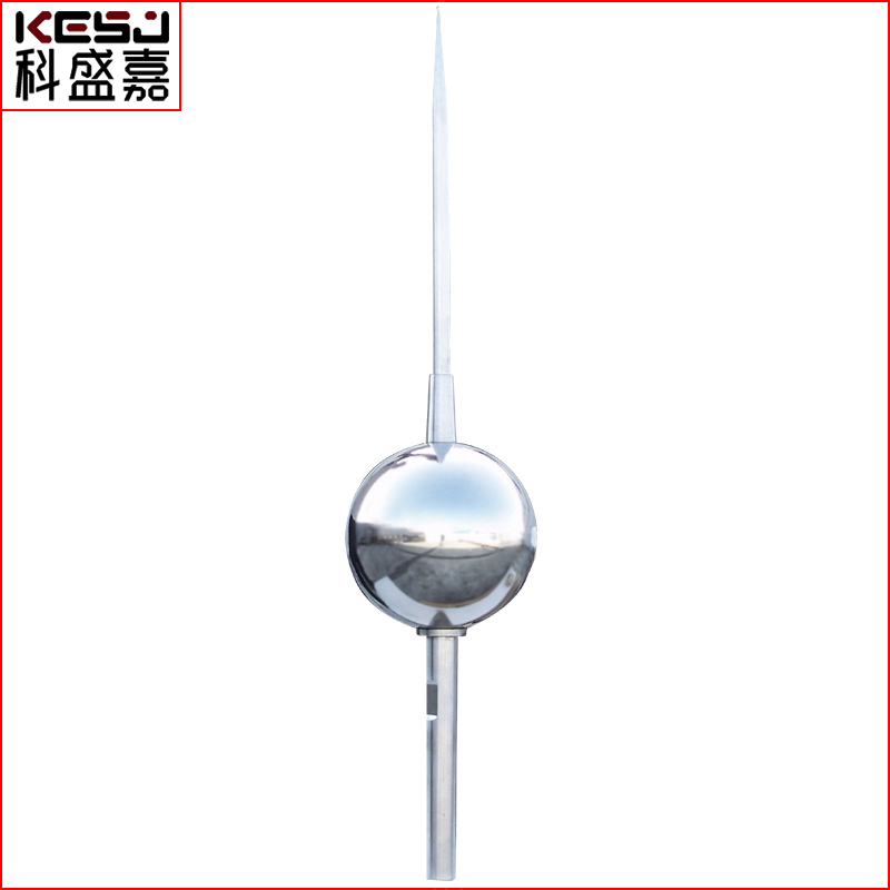 湘西科盛嘉公園雙球避雷針KSJ-Y2000/3000經(jīng)過全面升級完成,在法國馳名的SEDIVER測驗(yàn)測驗(yàn)室(巴薩特核心測驗(yàn)測驗(yàn)室)經(jīng)過研發(fā)過程的技術(shù)剖斷,并向全球馳名的供給第三方自力考驗(yàn),監(jiān)理和認(rèn)證的權(quán)威機(jī)構(gòu)提交認(rèn)證,經(jīng)過該機(jī)構(gòu)嚴(yán)格審核,獲得LR認(rèn)證。需提早在安裝地位澆筑水泥基座,規(guī)格尺寸400mm×400mm×600mm(長×寬×高)并預(yù)埋地腳螺栓,或用膨脹螺絲。而它又聚積了大部分電荷,所以當(dāng)云層上電荷較多時(shí),避雷針與云層之間空氣就很輕易被擊穿成為導(dǎo)體。安裝時(shí)各部件間要毗連靠得住,安裝完成后,各毗連處或金屬概況涂鍍層有損傷處,應(yīng)做好防銹措置。避雷針的核心匯集桿和激起器之間的電場活絡(luò)增長而造成尖端產(chǎn)生的空氣離子化可于極短及切確的時(shí)刻內(nèi)放電,因大批電離子的存在,從而使自然的Corona效應(yīng)減低,產(chǎn)生一預(yù)期上行放電通道,可活絡(luò)、安然地將雷電截?fù)艏鞍踩坏匦狗诺酱蟮亍nA(yù)放電避雷針的包庇半徑與高度(h)有關(guān),與它的啟動(dòng)爭先時(shí)刻(型號)有關(guān),以及與所選的保護(hù)級別有關(guān):當(dāng)h<5時(shí),見保護(hù)半徑表。不銹新型材料,耐侵蝕,抗風(fēng)能力強(qiáng)。在同等條件下,湘西科盛嘉公園雙球避雷針與傳統(tǒng)避雷針相比,不管在泄流速度上面,還是在保護(hù)半徑上都遠(yuǎn)遠(yuǎn)大于傳統(tǒng)避雷針。將避雷針置于籌備妥的基座上(請求安裝基準(zhǔn)面平行于高空),瞄準(zhǔn)安裝孔用螺栓將底座與基座邊接在一路,將接閃器裝入球體頂端螺柱上,羅紋必須旋合到位,并旋緊。因限流避雷針的入地電流較少,是防直擊雷的理想設(shè)備。這是查核預(yù)放電型避雷針(ESE型避雷針)性能的重要指標(biāo)。工作原理,當(dāng)避雷針受雷擊時(shí),由接閃器接閃,經(jīng)過過程氣隙放電,限流阻抗,將雷電流幅值、陡度減小。在雷電條件下,當(dāng)雷電下行先導(dǎo)瀕臨高空時(shí),任何導(dǎo)電的概況均會產(chǎn)生一個(gè)上行先導(dǎo),然后經(jīng)過引下線引到地網(wǎng)上,經(jīng)過強(qiáng)大的地網(wǎng)快速泄流,從而真正做到了引開雷電流而保護(hù)了其他設(shè)備或人體免遭雷擊。